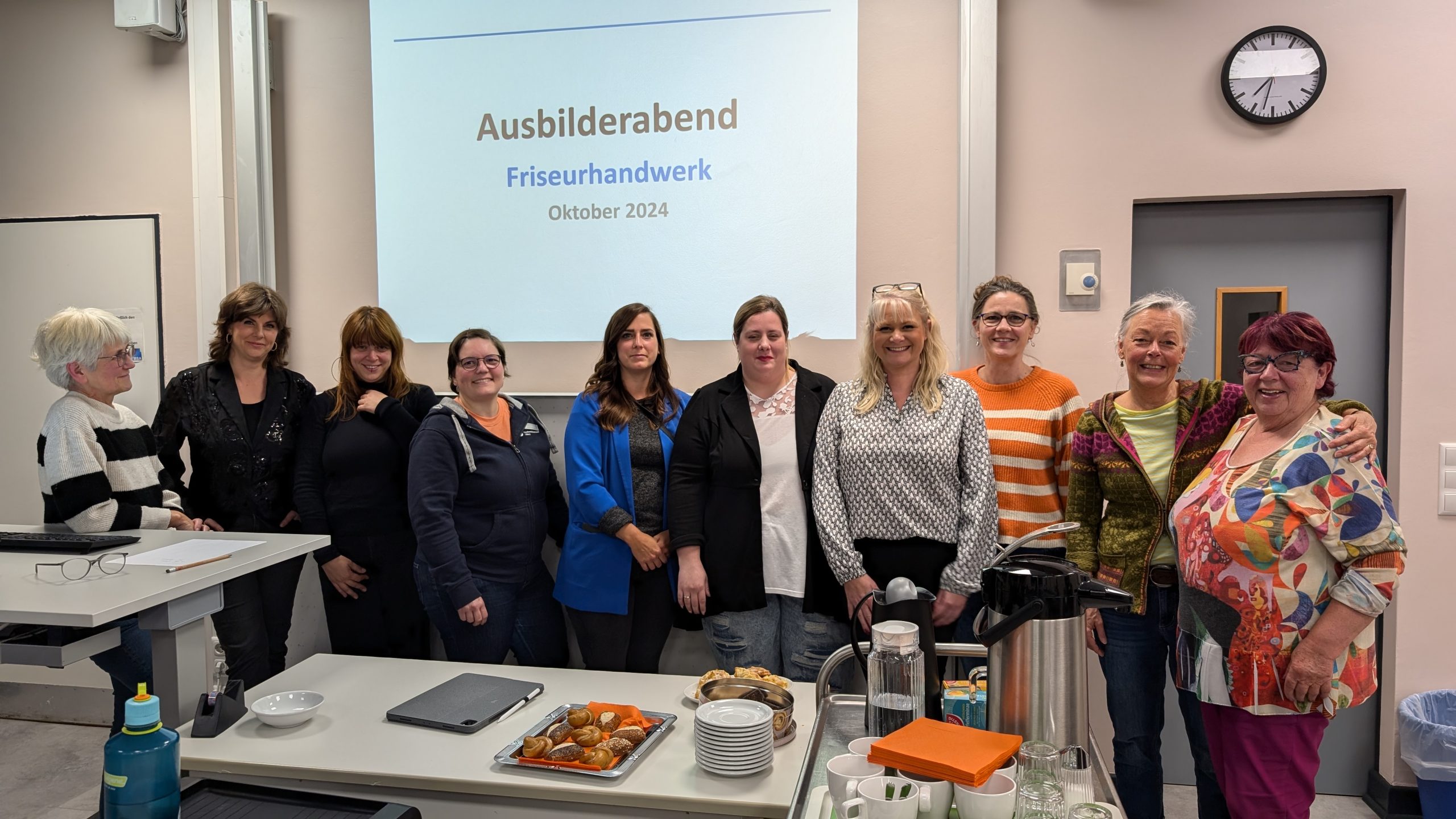 Der Fachpraxisraum der Friseurausbildung an der BSA wurde in den vergangenen Monaten komplett neugestaltet. Dies stellte Anlass für das Treffen der Ausbilder des Friseurhandwerks Stormarn dar. Neben Vertretern der Ausbildungsbetriebe, der Obermeisterin Frau Böhmer, der Prüfungsausschussvorsitzenden Frau Zimmermann und den Lehrkräften war auch Frau Freermann von der Handwerkskammer Lübeck gekommen. Sie stellte in einem Impulsvortrag zum Thema „Qualität in der Ausbildung“ die Möglichkeit dar, durch verschiedene Maßnahmen die potentiellen Auszubildenden für das Unternehmen zu interessieren und schnell einen „guten Draht“ herzustellen.