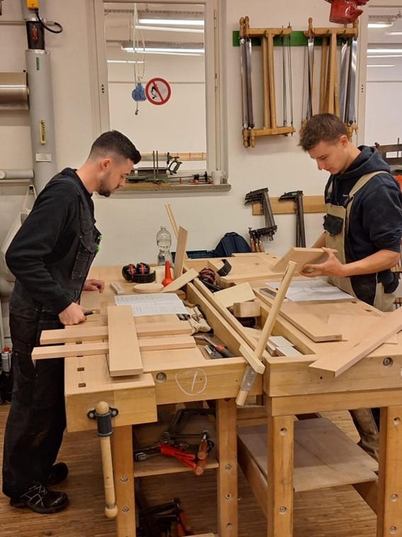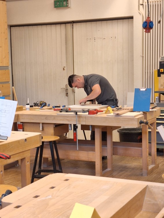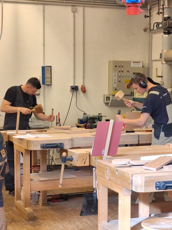 Die leichte positive Anfangsanspannung löste sich nach kurzer Zeit in einer intensiven Arbeitsphase, in der die jungen Gesellen/-innen hochkonzentriert, strukturiert und mit einer hohen fachlichen Kompetenz, dass kleine Werkstück umsetzten.