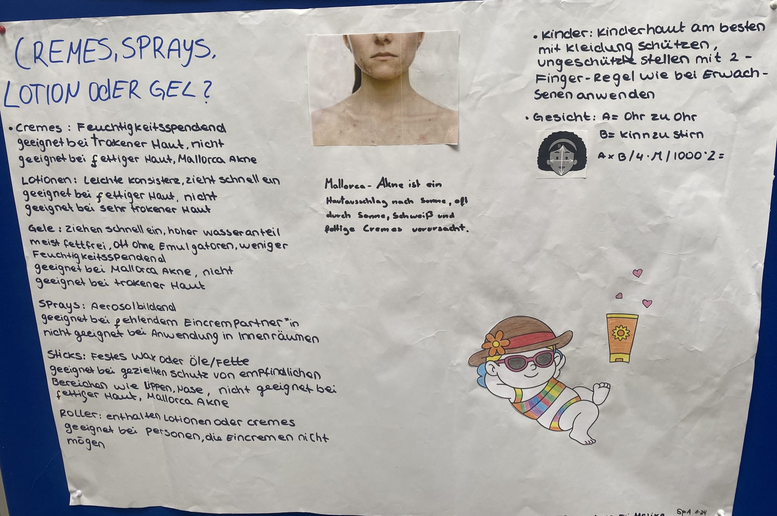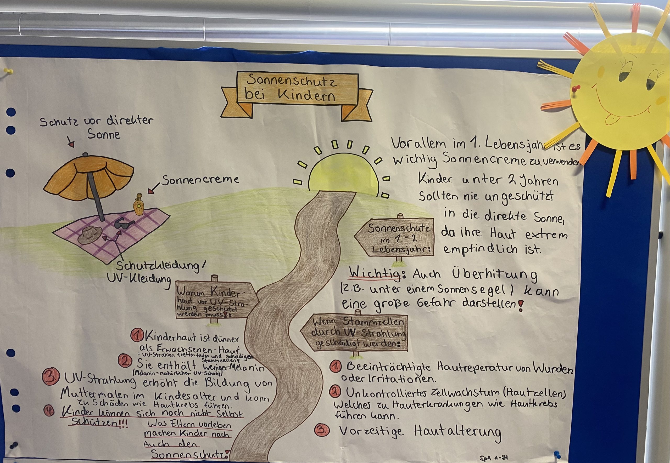 Die entstandenen Plakate liefern auch über die SPA-Ausbildung hinaus für alle Schülerinnen und Schüler relevante Informationen. Denn UV-Schutz ist kein reines Kita-Thema. Er betrifft uns alle: als junge Erwachsene, als Eltern, Geschwister oder Freunde!